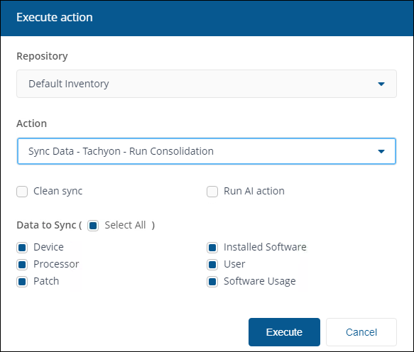 Click Execute in the Execute action pop-up to start the sync.