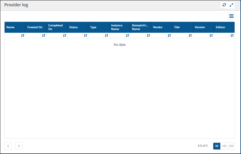 The Provider log page lets you view status log events related to 1E Provider operations.