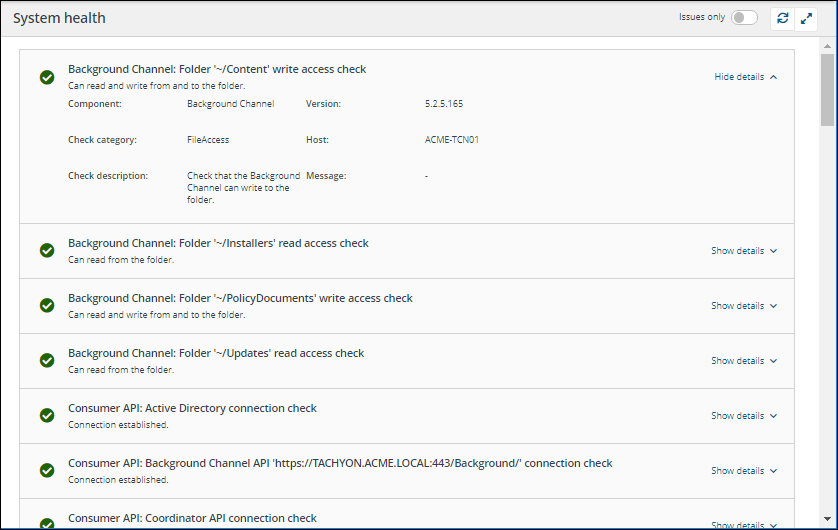 Check that Consumer API can connect to Core API. Uses the URL(s) stored in the TachyonMaster database. |