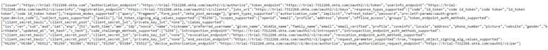 Selecting this displays the Okta OpenID MetaData: