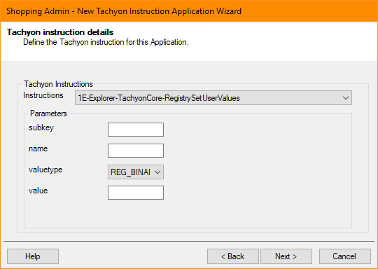 1E Instruction applications are largely handled in the same way as Configuration Manager applications, please refer to Configuration Manager applications for more details.