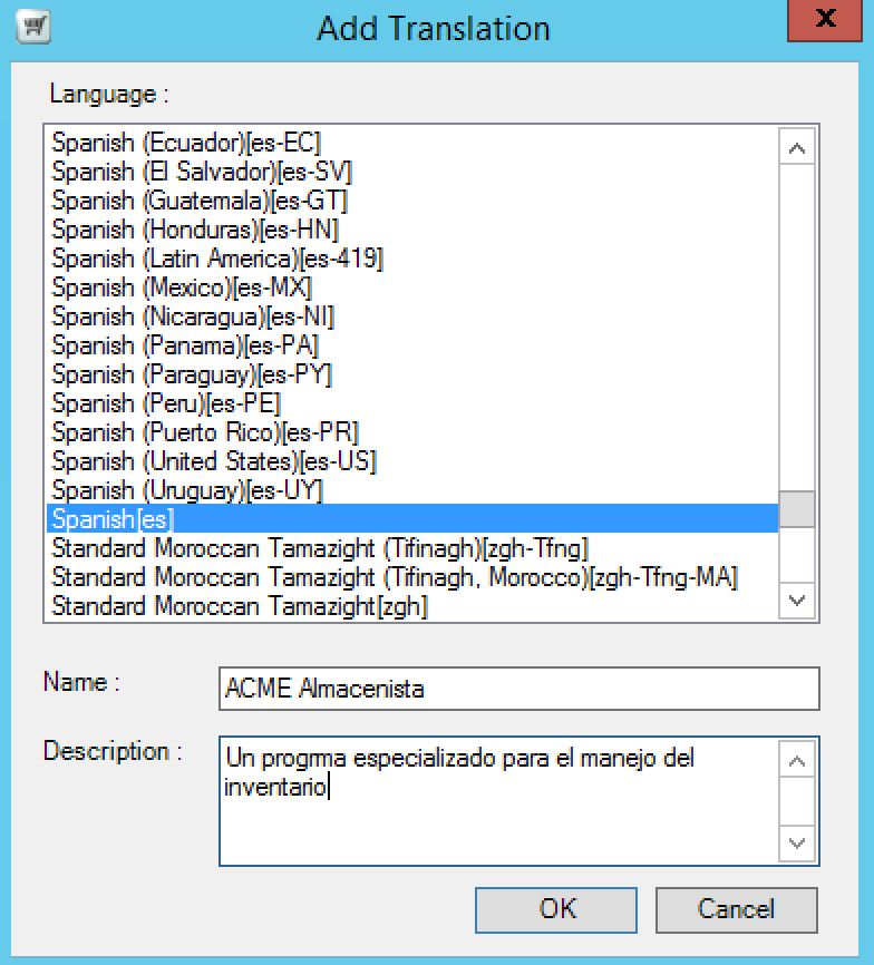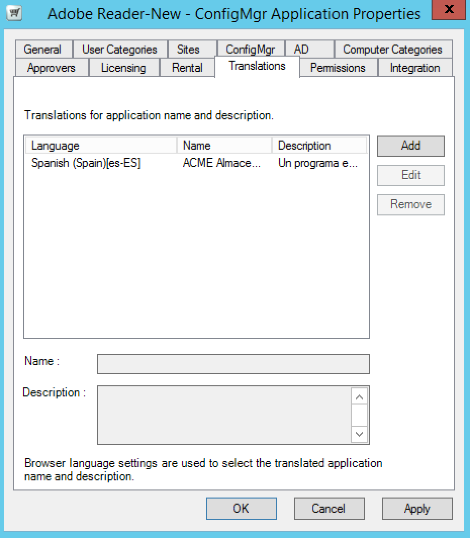 Use this to manage localisation for application names and their descriptions. To add a translation:
