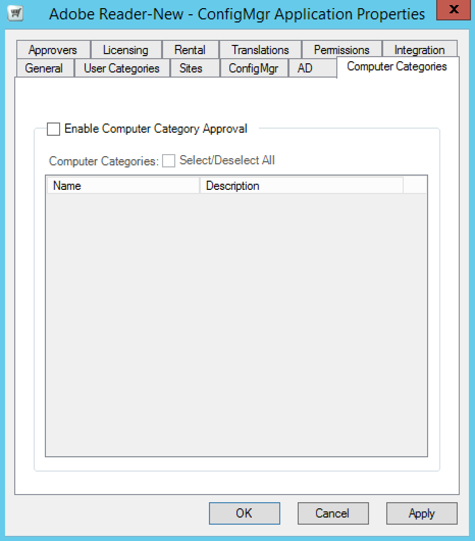 Tick the Enabled Computer Categories Approval check box.