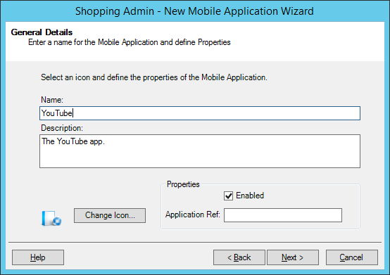 On the General Details screen, enter the name and description for the application. In our example, we used the YouTube mobile app.