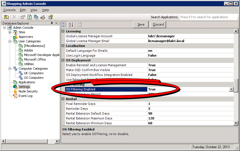 Under OS Filtering, ensure that OS Filtering Enabled is True.
