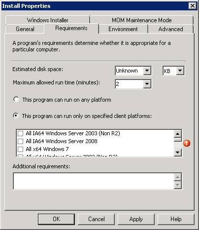 Non-AppModel applications must have the requirements option selected in its Install Properties dialog.