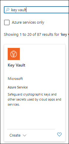 From the portal home screen, search for Key Vault.