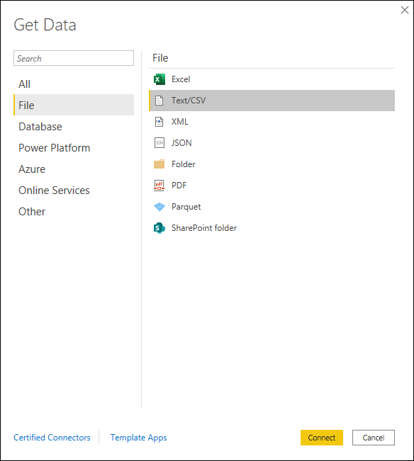 Open Power BI and create a new data source using a CSV file that contains your data.