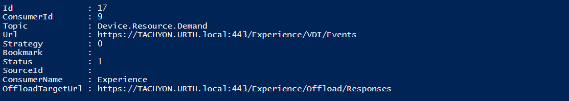 This cmdlet retrieves the event subscriptions that have been defined. Event subscriptions associate a consumer with a topic. For convenience, the consumer offloading target URL is included in the results.