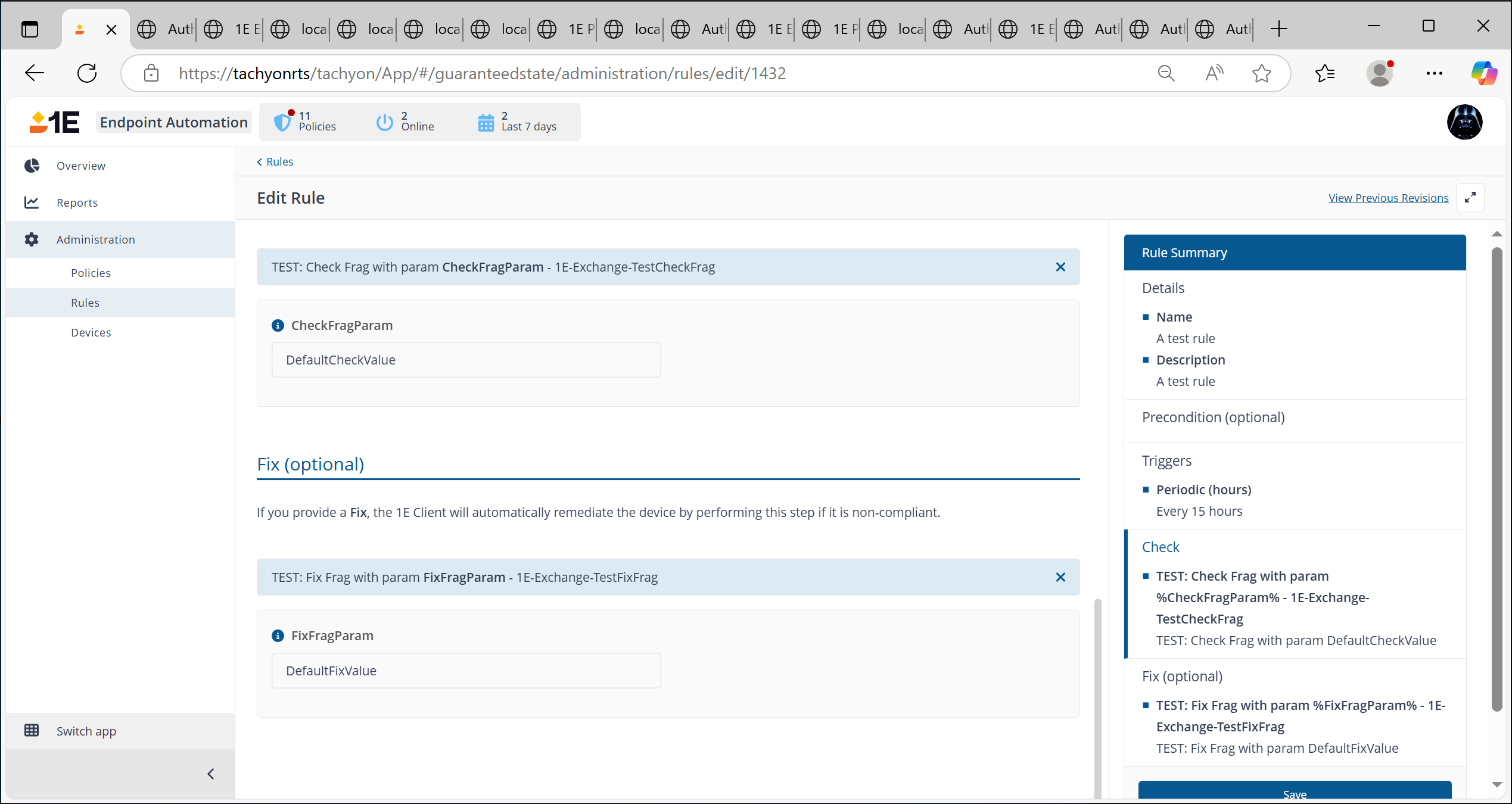 We are now going to bolt these all together using a rule. We create the rule in Endpoint Automation (Guaranteed State) in the 1E platform. When we save the rule, it looks like this:
