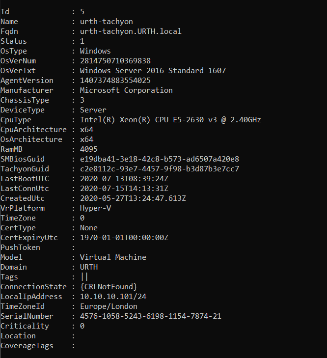 If the optional -Full argument is omitted, only the device FQDNs are returned as an object collection, with each object containing just an FQDN property.