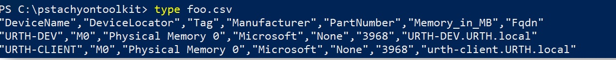 The -ResultColumns option allows you to specify one or more columns that you want to include in the CSV. By default, all columns are included. For example, in the results shown below, we could have included only the DeviceLocator and Tag columns by specifying -ResultColumns "DeviceLocator,Tag".