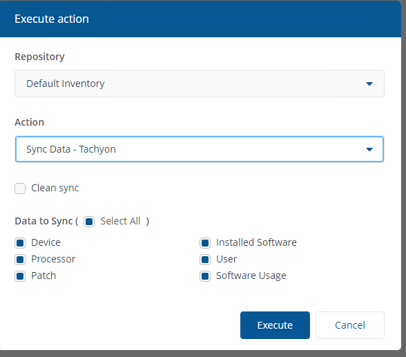 Click Execute. You can view the progress of the sync from Monitoring > Process Log in the UI.