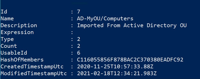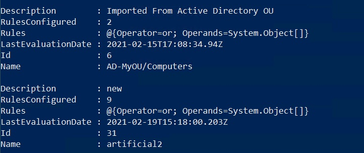 Also, newly-created groups in the platform must be specifically synchronized (by specifying their Id in the Sync-1ESLAManagementGroup cmdlet) in order for the actual device membership associated with the group to be updated. Until this is done, the group in the platform will appear to contain no devices.