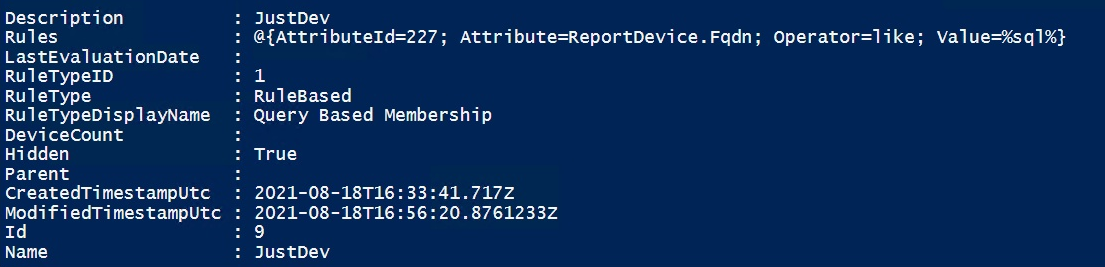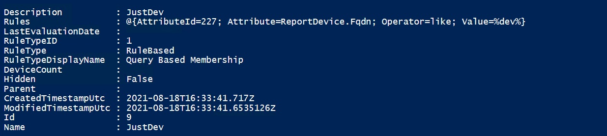 New-1ESLAManagementGroup -Name JustDev -Rules "[ReportDevice.Fqdn] like %dev%"