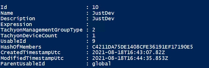 The management group in the 1E Platform may end up with a different Id. Its UsableId value is what we will use when querying the platform.