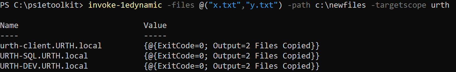 invoke-1Edynamic -files <files> -path <dest path> -targetscope <scope> | -targetfqdns <fqdns>