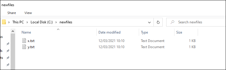 In the example below, two files (x.txt and y.txt) in the current folder are to be sent to a destination folder (c:\newfiles) on the target devices.
