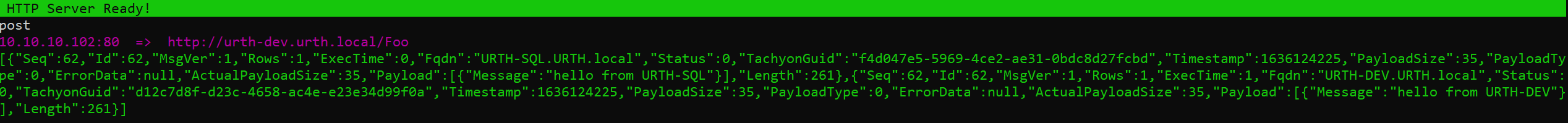 You will see the offloaded data sent to the listening web server as shown below.