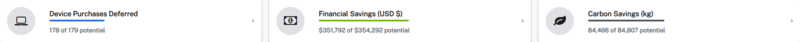 Financial and carbon savings insights: Monitor financial and carbon savings effortlessly. A clear and easily accessible tracking system for device cost and environmental impact reductions means enterprises can make informed decisions and take proactive steps to optimize both their financial resources and their commitment to sustainability.