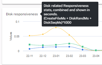 There is a hover function on the Combined score, Process responsiveness, and Disk responsiveness charts that displays the individual metrics used.