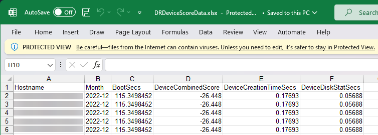 The Device Score and Raw Data can be exported to an Excel file for each individual host by clicking the Excel icon at the top right of the table.