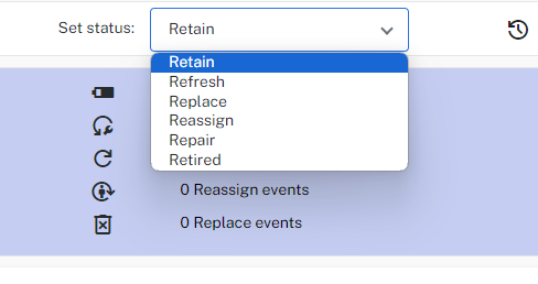 Mark Devices as Retain, Refresh, Replace, Reassign, Repair, and Retired manually from the drop-down menu.