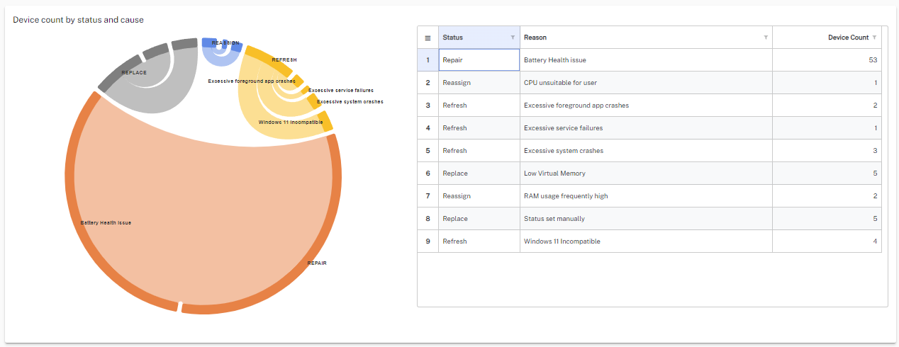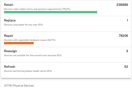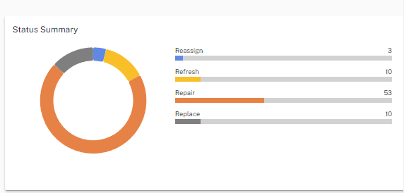 - Status: Total of devices that have a status of retain, replace, repair, reassign, or refresh.