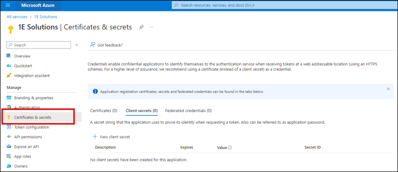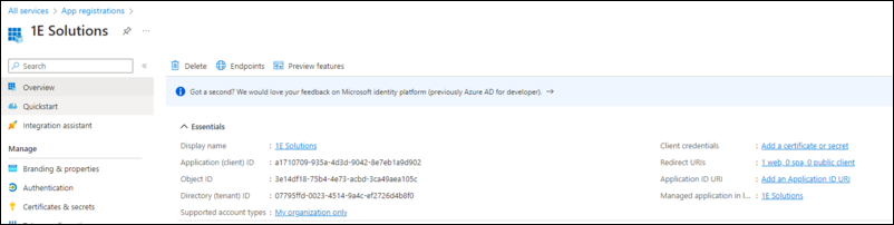 The Application (Client) Id of the 1E Integration AAD application must be registered with the Solution.