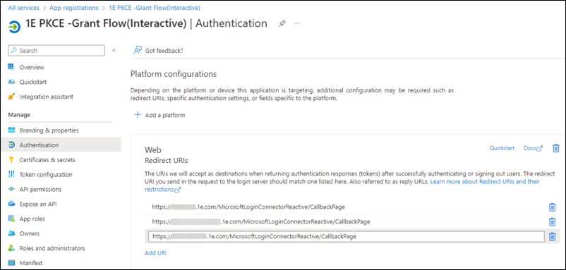 In Sign-in redirect URIs input the URL provided by 1E into the field.