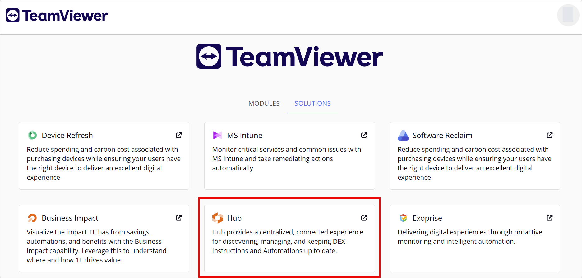To access the Hub, you must have a license for at least one Solution and have completed the Solutions setup. For more information, refer to Solutions getting started.