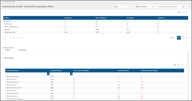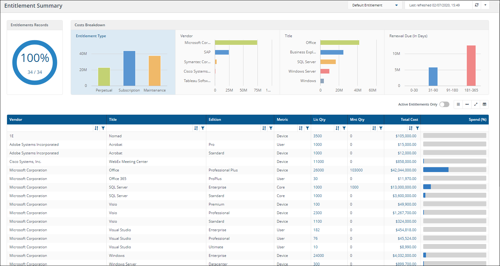 A license entitlement type in AppClarity specifies the rights and limitations of software and/or services that may be installed and/or used on an organizations computing devices. For example you could specify a license for Microsoft Visio 2016 and enable version downgrade rights to ensure that the license covers all versions up to 2016.