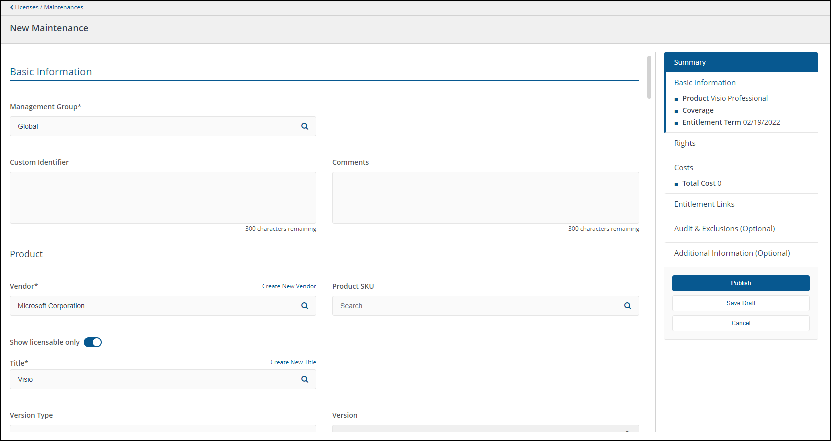 For License entitlements this can be set to Perpetual or Subscription. By default this is set to Perpetual. For Maintenance entitlements this can only be set to Subscription. |