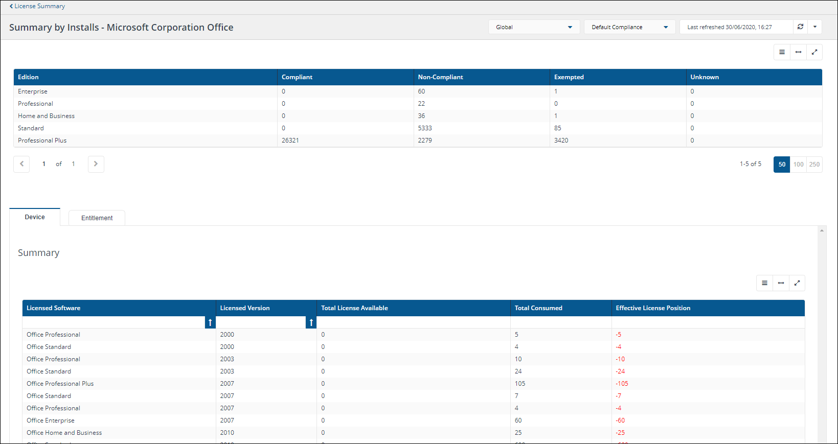 This field lets you select the repository where the entitlements data displayed on the page comes from. By default this is set to Default Entitlements. If you have created your own entitlements repositories, click on the name to select any of these from the drop-down list. |