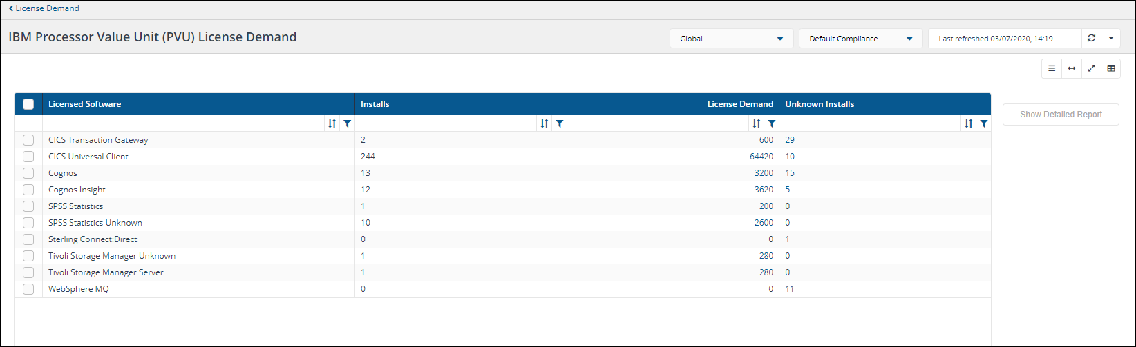 The following table describes the columns displayed in the Licenses/Maintenances table: