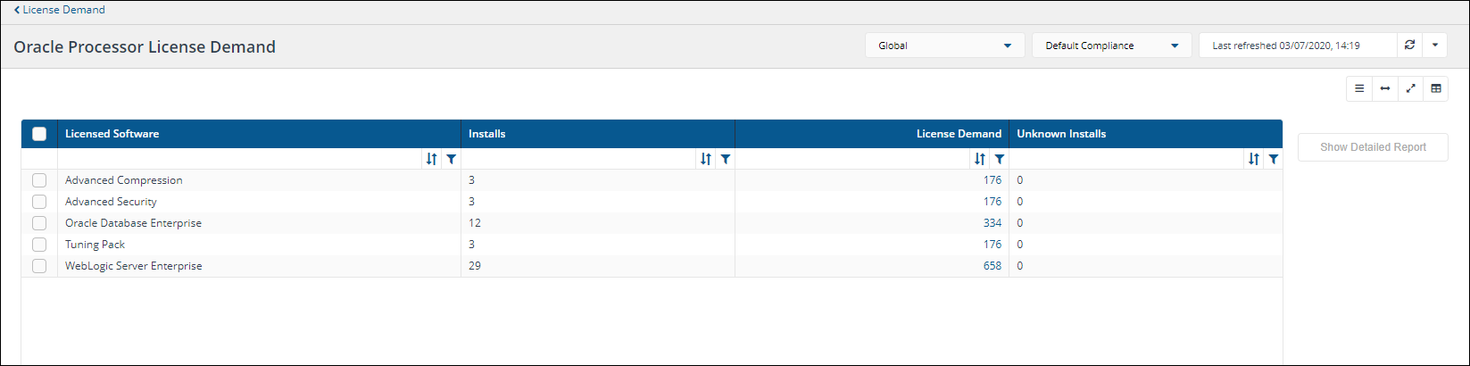 Here you can view the entitlements for a selected entitlements repository. You get to this page by clicking the AppClarity > Entitlements > Summary Report node in the navigation panel.