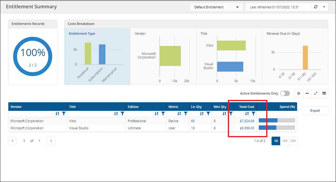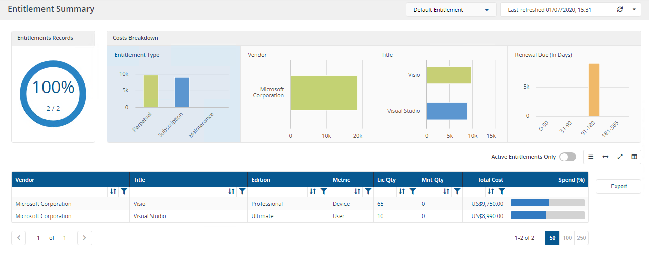 Entitlements are key components for determining your compliance position, also known as the license position. The license entitlements you create are taken into account against the installations on your enterprise, you can then create various reports to show exactly what your effective license position is.