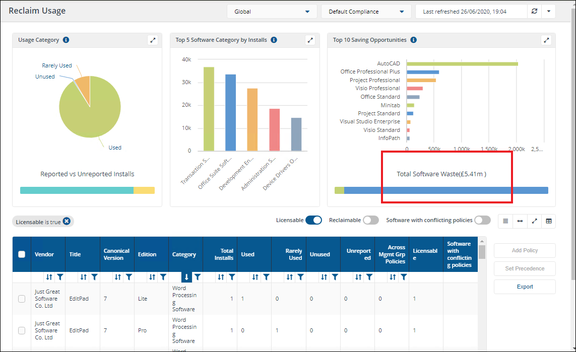 After updating then to view the changes reports on the following screens will require refreshing: Entitlements - Summary, Reclaim - Usage Summary, Reclaim - Policies and Reclaim - Savings