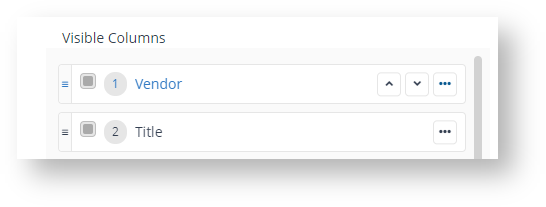To move up or move down, exclude or include any column, clicking on the ellipsis displays these additional controls. |