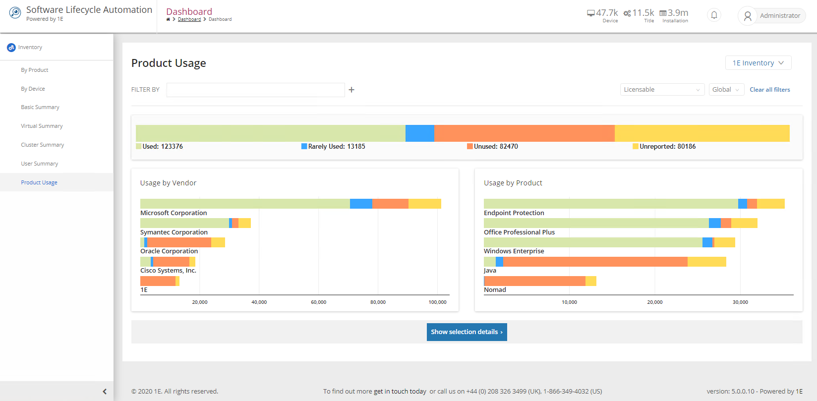 In this example we've investigated product usage data and seen the differences between the SLA Inventory Product Usage and AppClarity Product Usage pages. We've also seen how we can focus on a particular product and investigate its rarely used and unused installations.