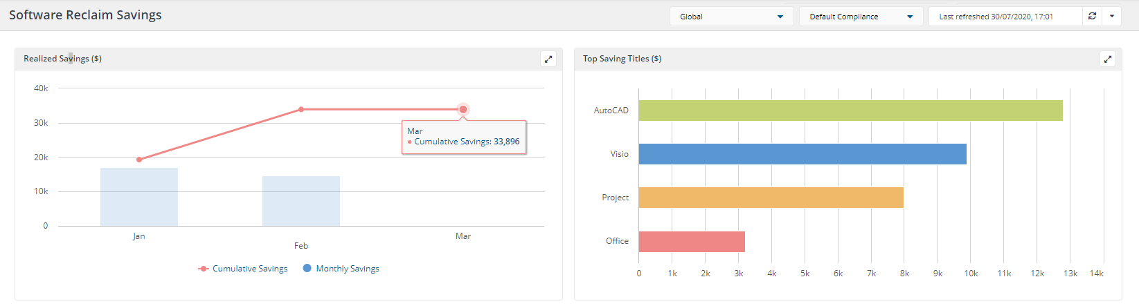 In the Top Savings Titles ($) you can click on each title and it's individual Cumulative Savings total will be displayed in Realized Savings ($). Top Savings Titles ($) displays the top 5 saving titles.
