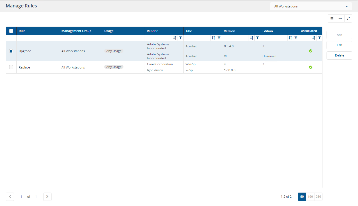 In this example we have a Rule to upgrade computers in the All Workstations Management Group from Adobe Acrobat version 9.3.4.0 to Adobe Acrobat XI.