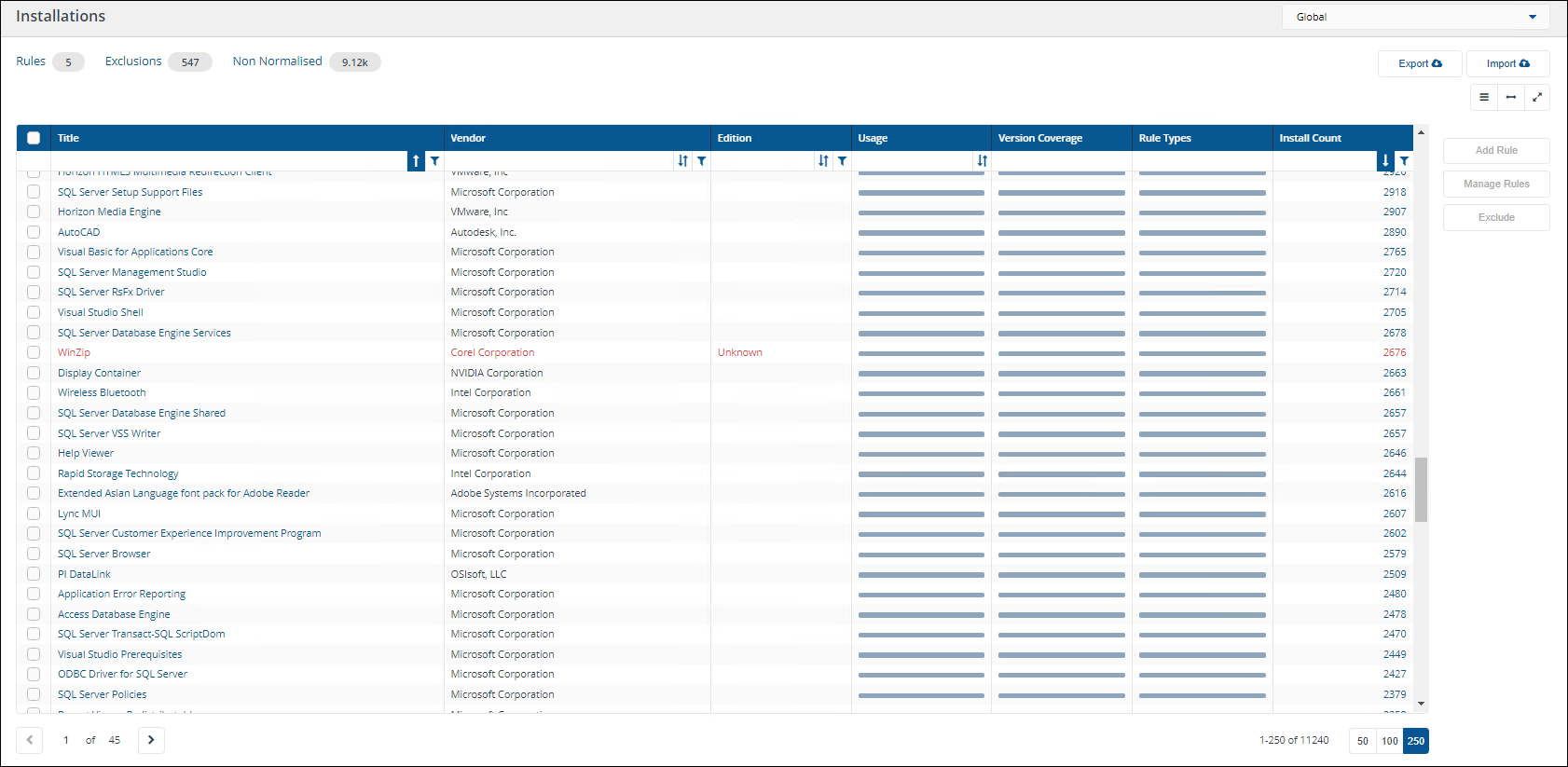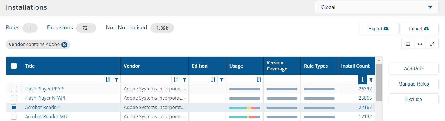 The Installations page can be used to add migration rules for applications that are already installed in your estate. If you want to add a migration rule for an application that is not yet reported as installed on any devices in your estate, you will need to use the Manage Rules page.