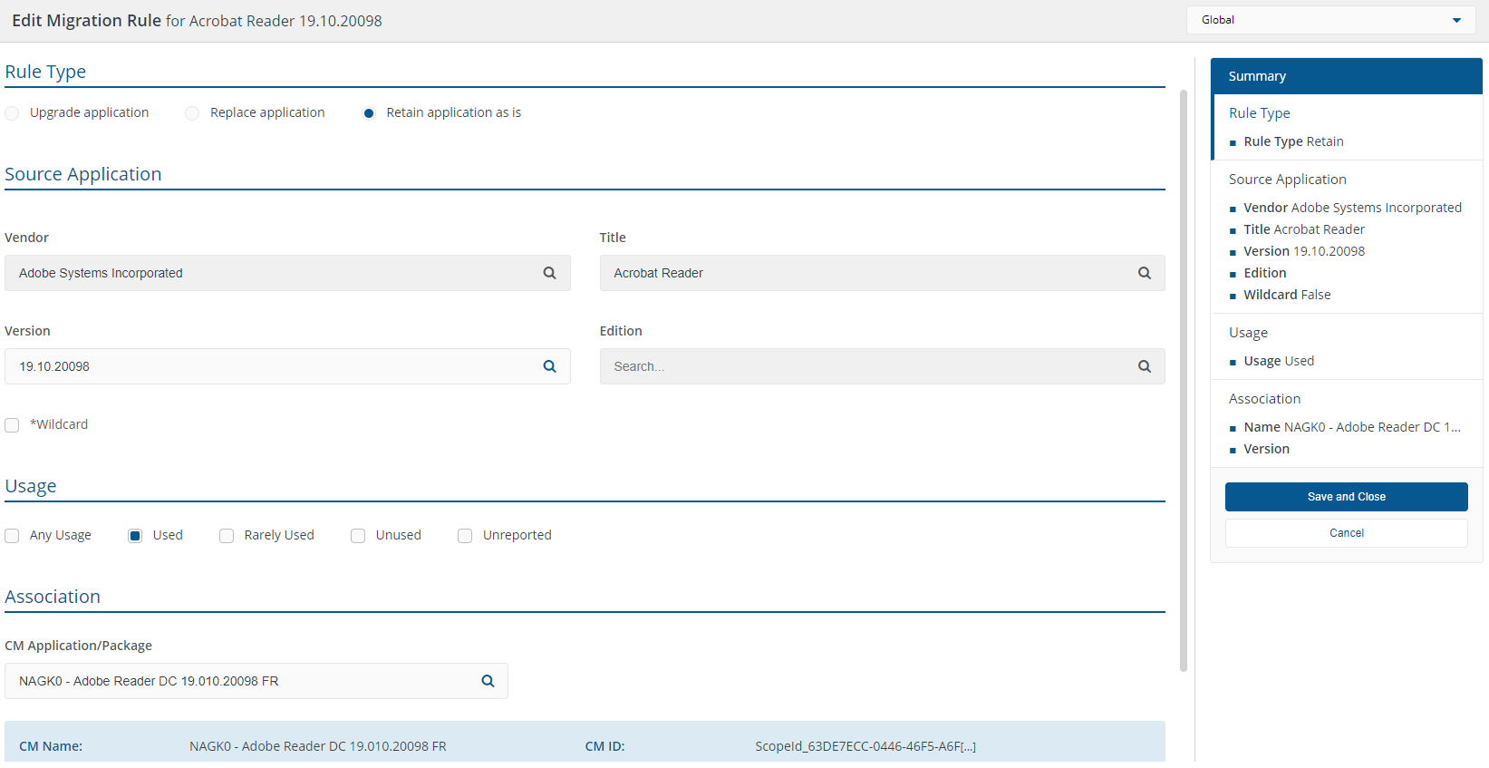In this example, we are going to modify the existing retain Acrobat Reader migration rule by: