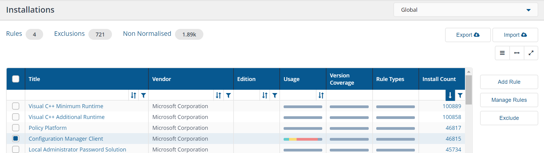 You most likely will not want to create migration rules for these types of applications and the Exclusions feature helps reduce the level of noise you have to navigate. Excluded applications are based on vendor, title and edition and fall into two categories.