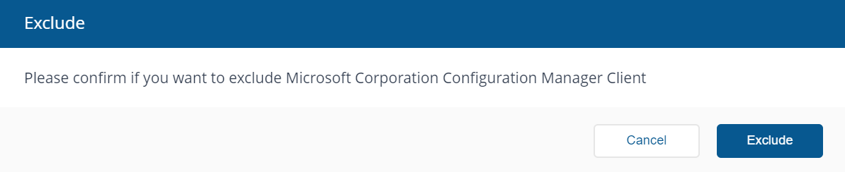 To exclude an application, on the Installations page, locate the application you want and click Exclude. Click the filter icon
