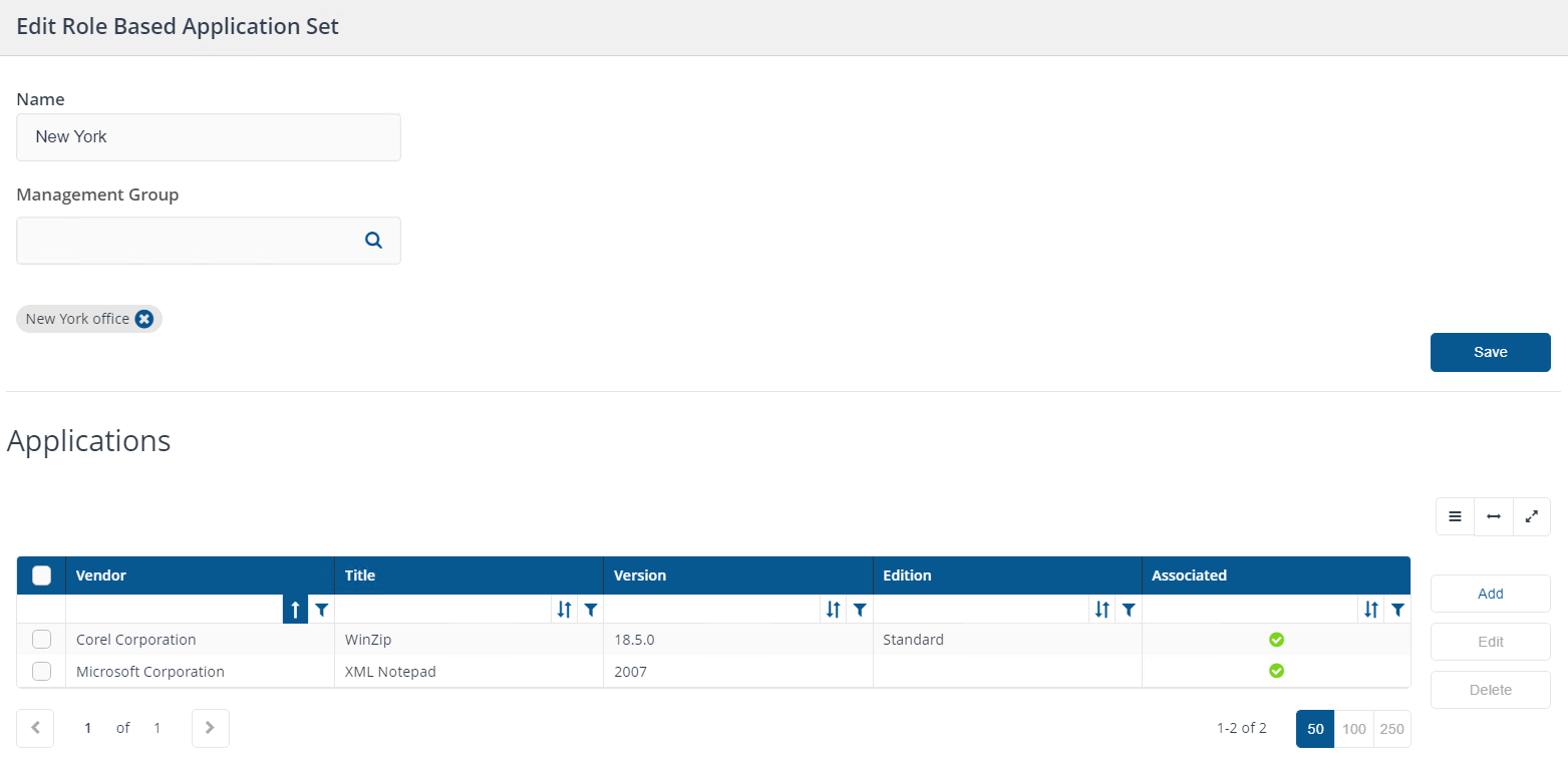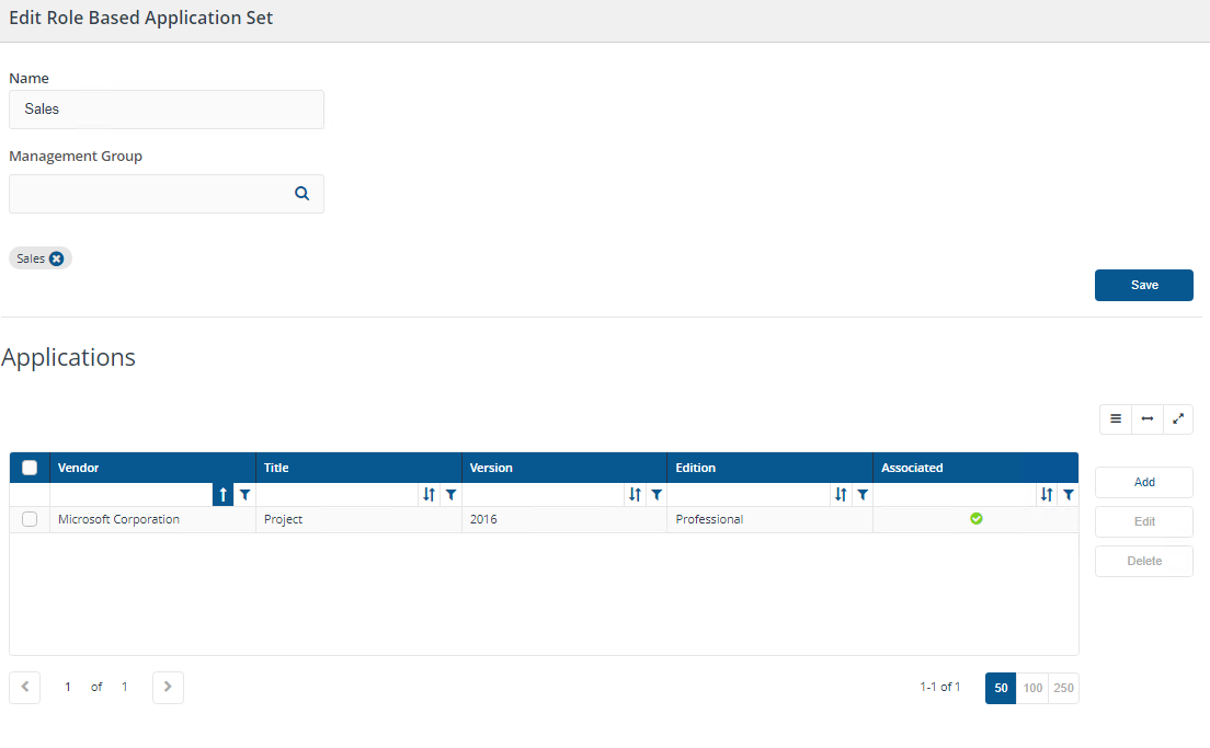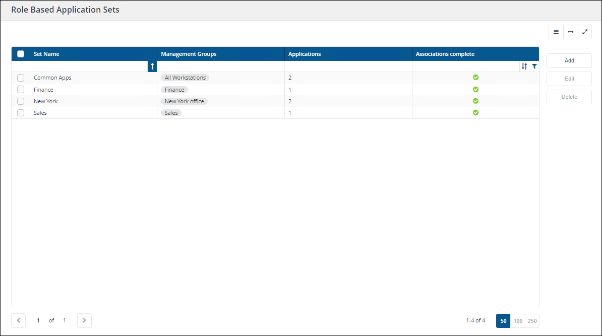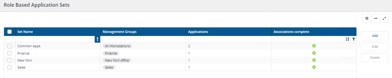 You can add, edit and delete Role-based Applications Sets from the Role Based Application Sets page.