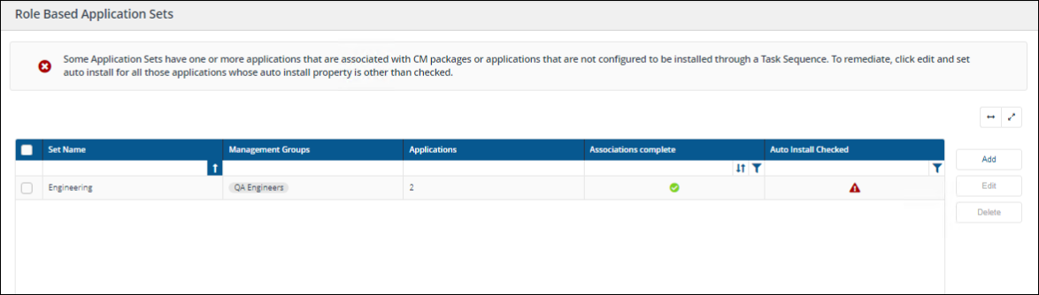 If Role Based Application set has an application with the Auto Install unchecked, you will be prompted to edit that rule and set the Auto Install to enabled. You can view this type of rule by filtering the Auto Install column by Not Checked.