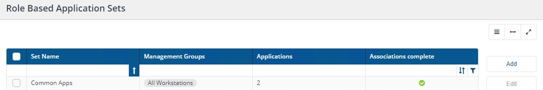 In the following example, a Role Based Application Set named Common Apps has been created for the All Workstations Management group.