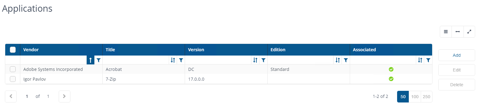 Populate the Vendor, Title, Version and Edition fields. As you start typing in the Vendor and Title fields, a list matching your string is dynamically generated for you to choose from. In our example, we are adding Adobe Acrobat to the application set we just created.